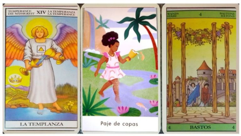 1º - La templanza: esta es una carta que nos habla de sostener el equilibrio y la armonía. Donde uno está en la búsqueda de un periodo de estabilidad y de paz.