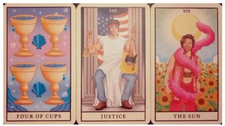 Conclusión: Las cartas de esta jornada nos hablan acerca de una persona que ha estado, o quizás aún está, con una actitud de apatía o indiferencia, respecto a sus emociones y afectos. Dicha actitud lo pudo haber estancado en un comportamiento un tanto negativo. Lo cierto es que por suerte se da cuenta que de esa situación no saldrá si continúa rumiando lo que le ha ocurrido, toma conciencia que tiene que hacer algo y sale en búsqueda de justicia, no en el sentido de hacer justicia por mano propia, sino en el de poner cierto orden en su vida para poder encontrar equilibrio y balance. El tarot nos dice que ese es el camino a tomar y que más temprano que tarde, ese mal momento quedará atrás. Se podrá encontrar plena claridad para actuar y se habrá pasado de la apatía a la felicidad.