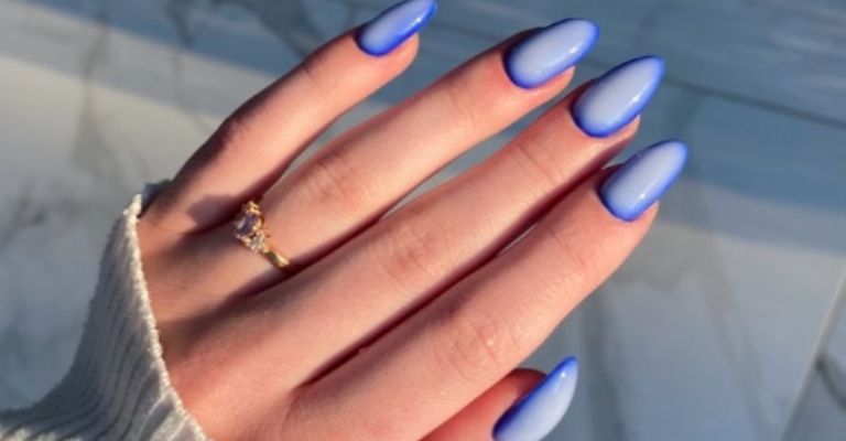 Las orbit nails con diseño aura se complementan con la tendencia del color azul, aunque también puedes hacerlo con otros tonos de pastel que vayan contigo y tu tono de piel.
