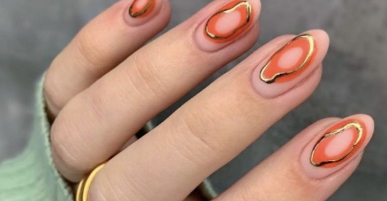 El otro es el de las orbit nails abstractas, con las cuales podrás jugar con el tema de las texturas, siempre y cuando se mantenga la esencia del estilo original. Aquí podrás mezclar los colores dorado con el naranja para el efecto de una aura rodeando su órbita.
