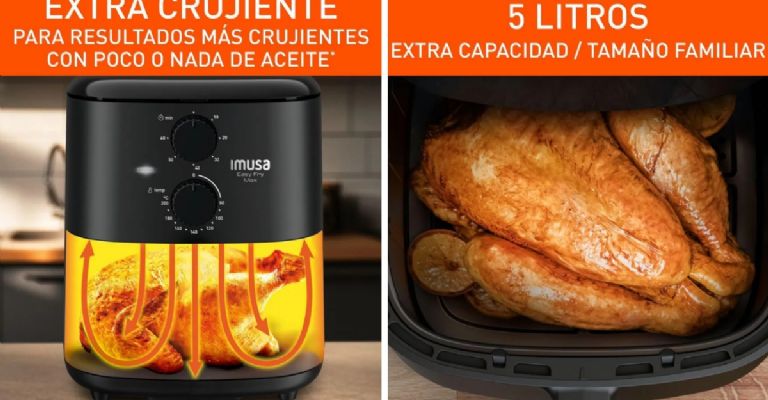 Este modelo destaca en el mercado nacional por su sistema mecánico intuitivo, que utiliza perillas manuales para controlar el tiempo y la temperatura. Su capacidad de 5 litros es ideal para preparar desde pollos pequeños hasta bandejas completas de vegetales, optimizando el tiempo de cocción sin necesidad de utilizar aceite en exceso. Es una herramienta versátil que permite no solo freír con aire, sino también hornear, asar y dorar alimentos con resultados crujientes y saludables.